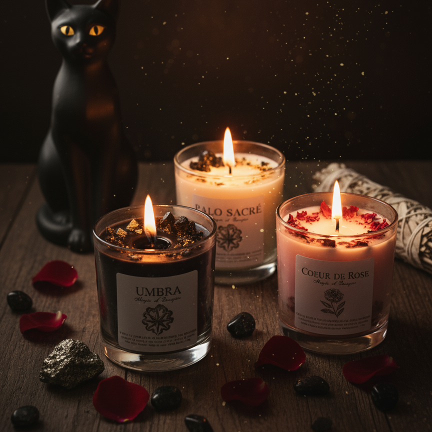 Chaque bougie possède une intention énergétique particulière (protection, amour, purification, ouverture de chemins…).