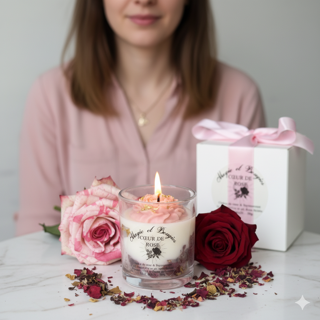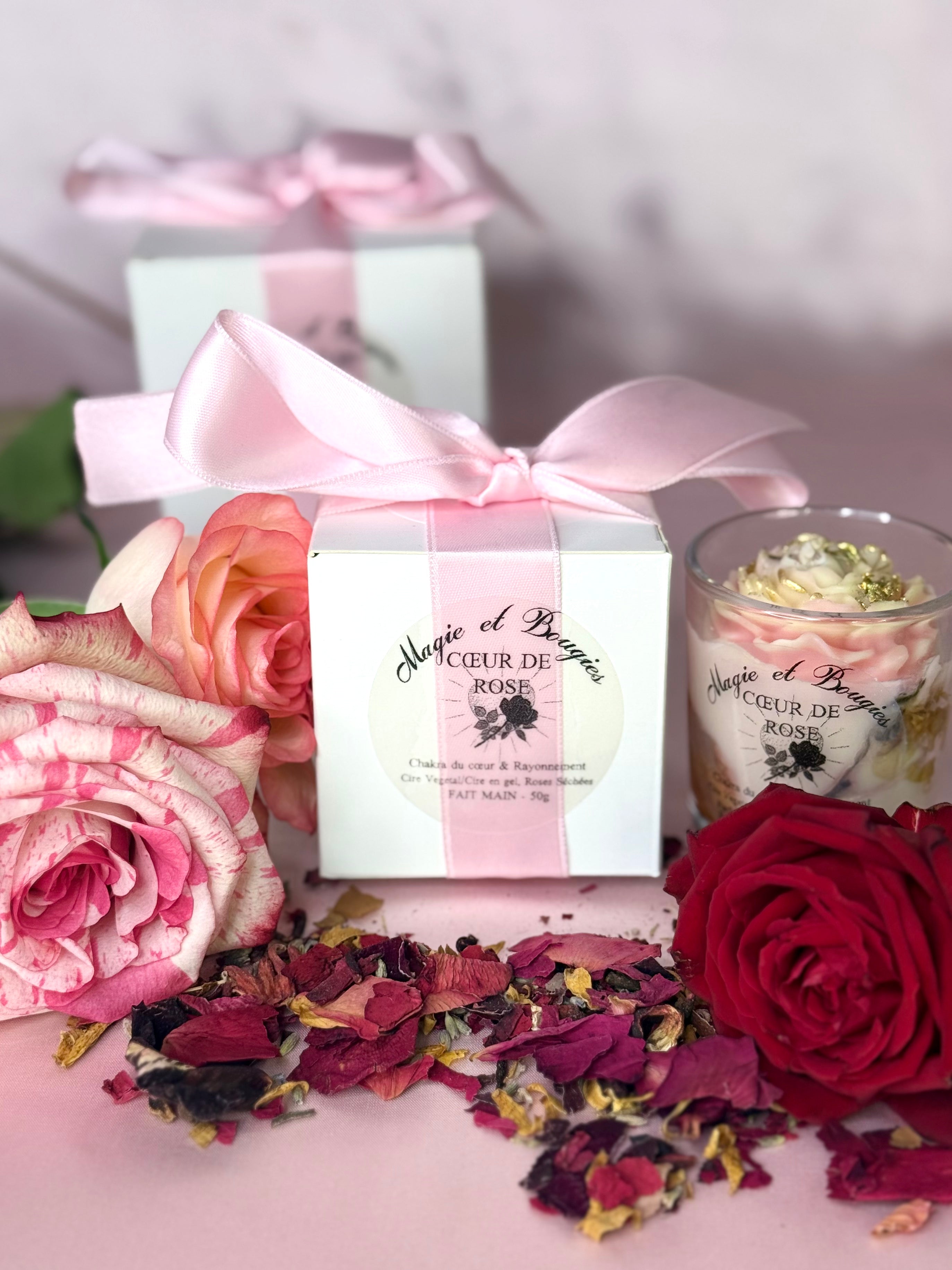 Cœur de Rose n’est pas une bougie ordinaire : c’est un rituel en cire, un élixir énergétique dédié au chakra du cœur, conçu pour transformer les blessures invisibles en lumière douce et réparatrice.